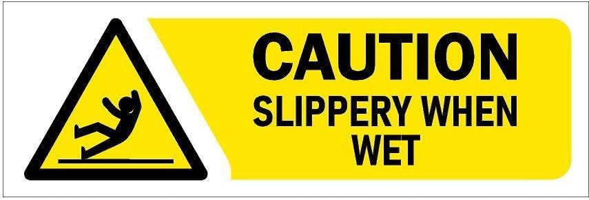 Caution. Slippery when wet sign - Self adhesive sticker (150mm x 50mm)