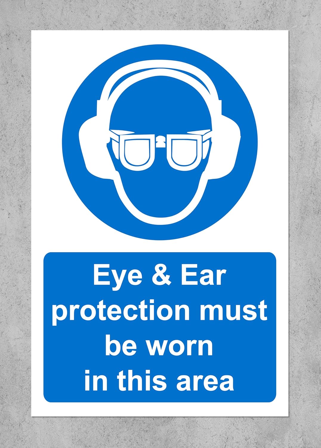 Eye and ear protection must be worn in this area Safety sign - 1mm Plastic sign (300mm x 200mm)