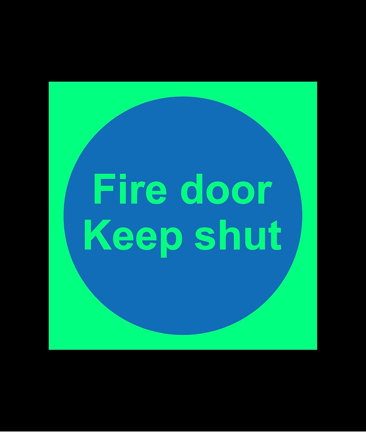Fire door keep shut safety sign - 100mm x 100mm 1.2mm Photoluminescent rigid plastic with self adhesive backing