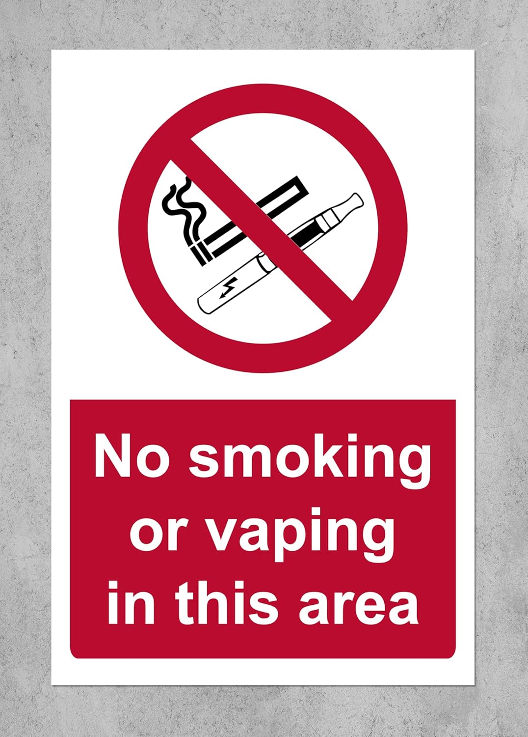 No smoking or vaping in this area Safety sign - 1.2mm Rigid plastic 300mm x 200mm Case (Pack of 10)