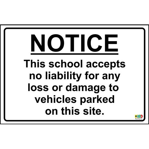 Notice This School Accepts No Liability For Any Loss Or Damage To Vehicles Parked On This Site Sign | Free Next Day Delivery | Free Delivery Over £25 | Low Prices | Order Online Today | Made In The UK By KPCM Display