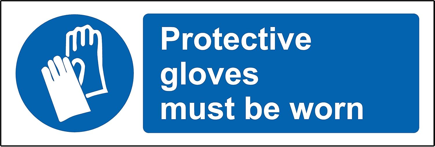 Protective gloves must be worn safety sign - Self adhesive sticker 150mm x 50mm