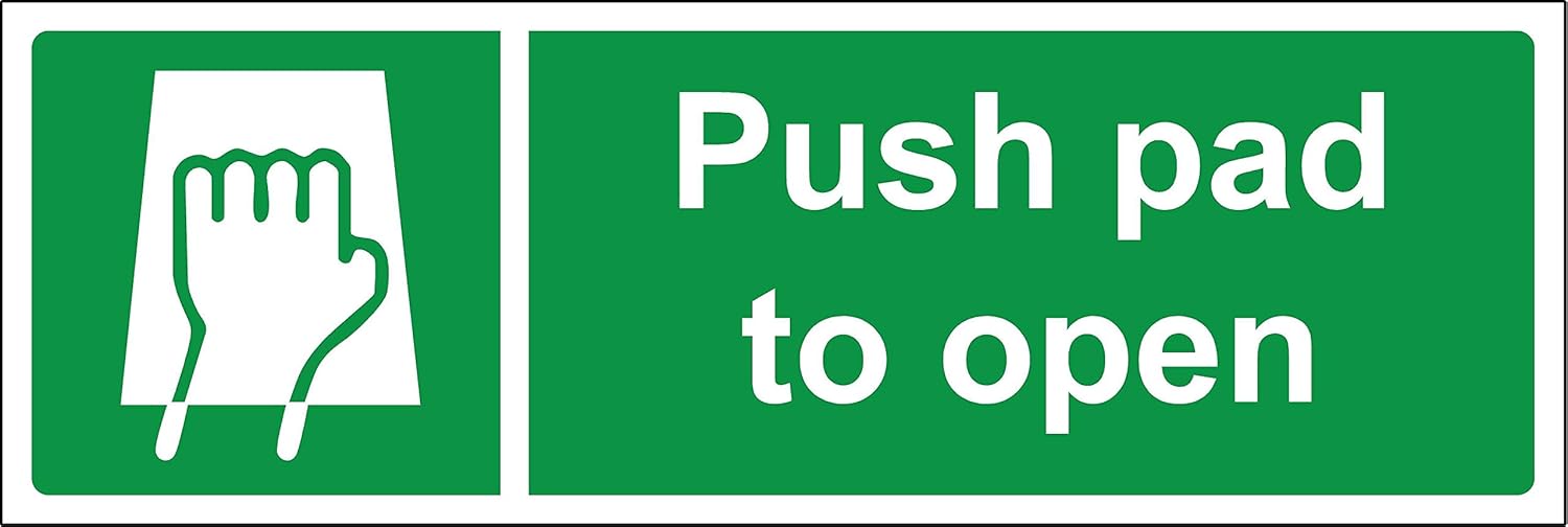 Push pad to open emergency Safety sign - Self adhesive sticker 150mm x 50mm