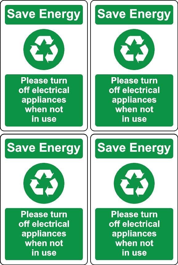 Save energy please turn off electrical appliances when not in use - Self adhesive sticker Pack of 4 100mm x 66mm
