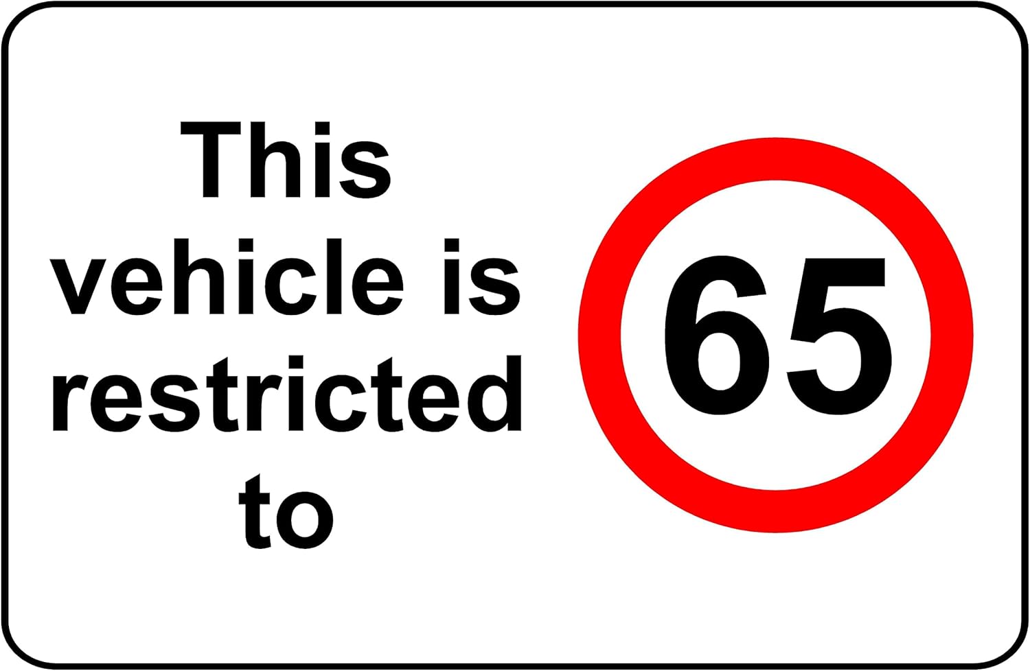 This Vehicle is Restricted to 65 mph Car Speed Restriction Sign - Self Adhesive Sticker (200mm x 150mm)