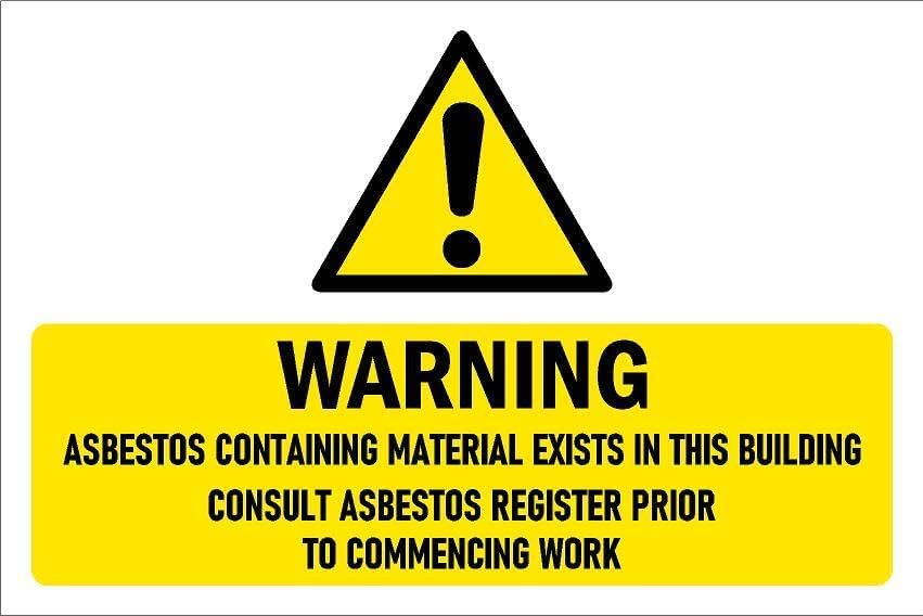 Warning, asbestos containing materials, safety sign - Self adhesive sticker (200mm x 150mm)