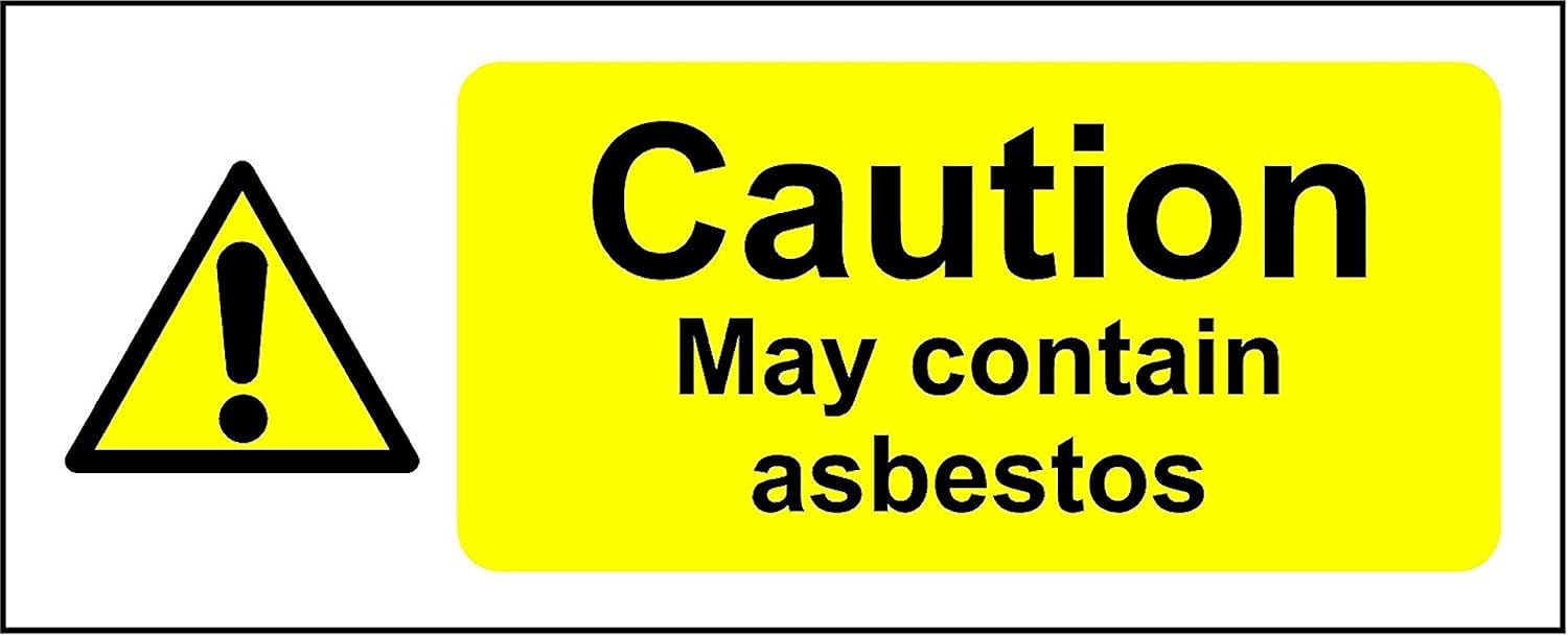 Warning contains asbestos sign - Self adhesive sticker 150mm x 50mm
