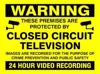 Warning Premises Protected CCTV 24 Hour Video Recording