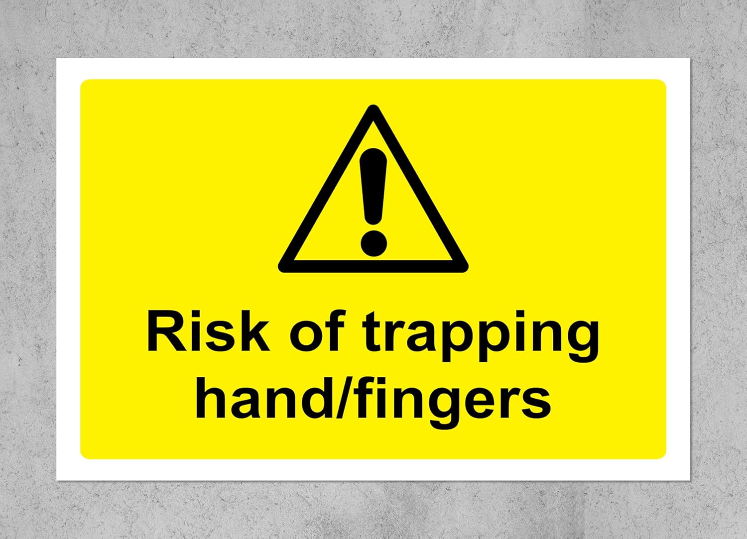 Warning sign Risk of trapping hand finger safety sign - Self adhesive sticker 75mm x 50mm
