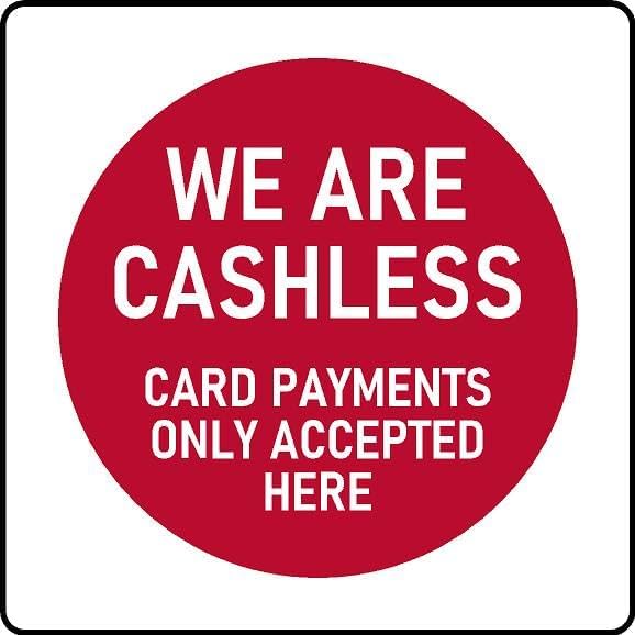 We are cashless Card payments only accepted here sign - Self adhesive sticker (200mm x 200mm)